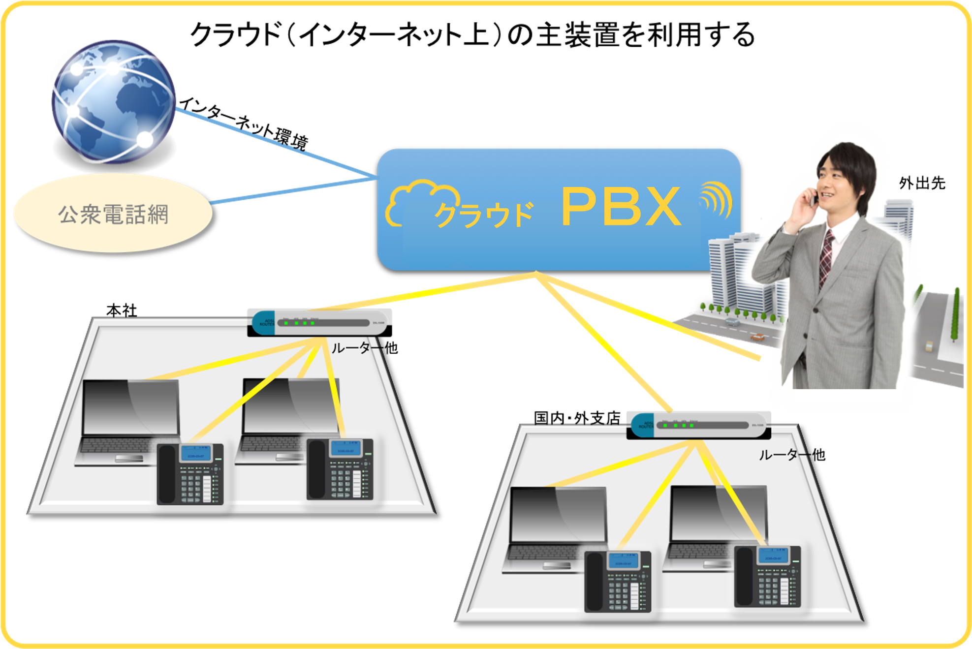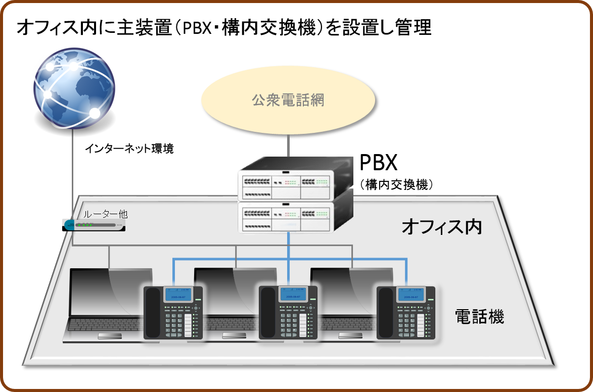 インターネット上のPBX(主装置)で