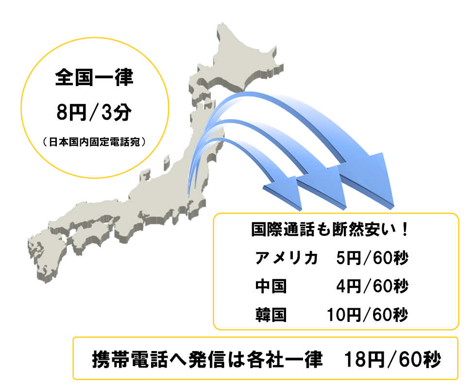| 国際通話 | アメリカ | 53円/1分 | 5円/1分 |